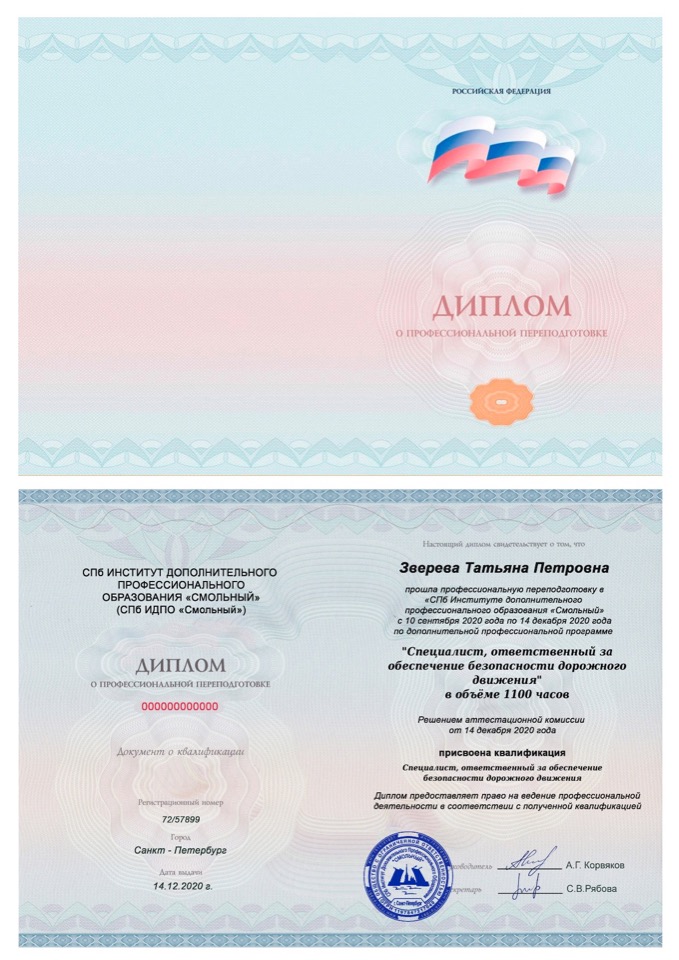 Диплом о профессиональной переподготовке установленного образца: отправляется заказным письмом Почтой России с указанием номера почтового идентификатора в личном кабинете Слушателя для возможности самостоятельного отслеживания письма на сайте «Почта России».