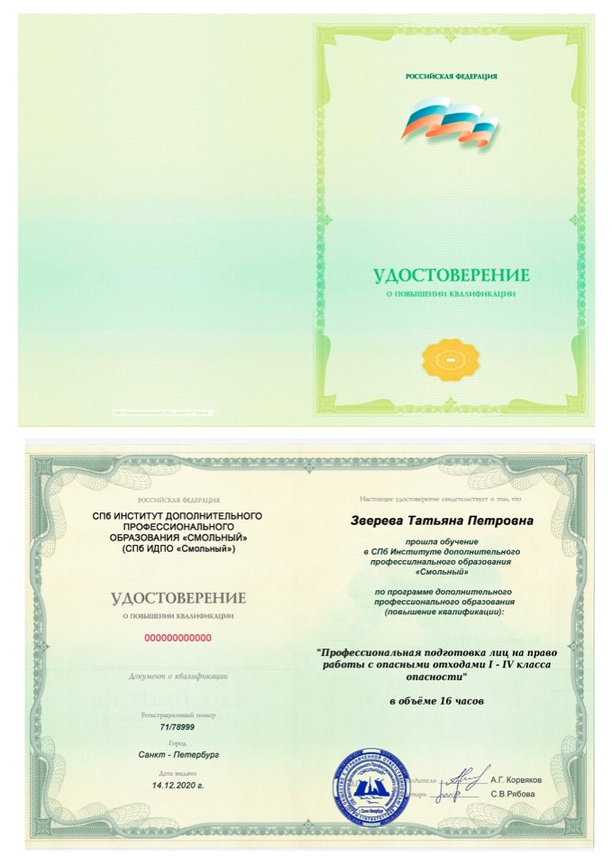 Санкт-Петербургский Институт дополнительного профессионального образования «Смольный» (СПб ИДПО «Смольный») осуществляет обучение специалистов по программе "Профессиональная подготовка лиц на право работы с опасными отходами I - IV класса опасности" в заочной форме (не указывается в документе) с применением дистанционных технологий. Для обучения достаточно наличие компьютера с выходом в информационную сеть Интернет.