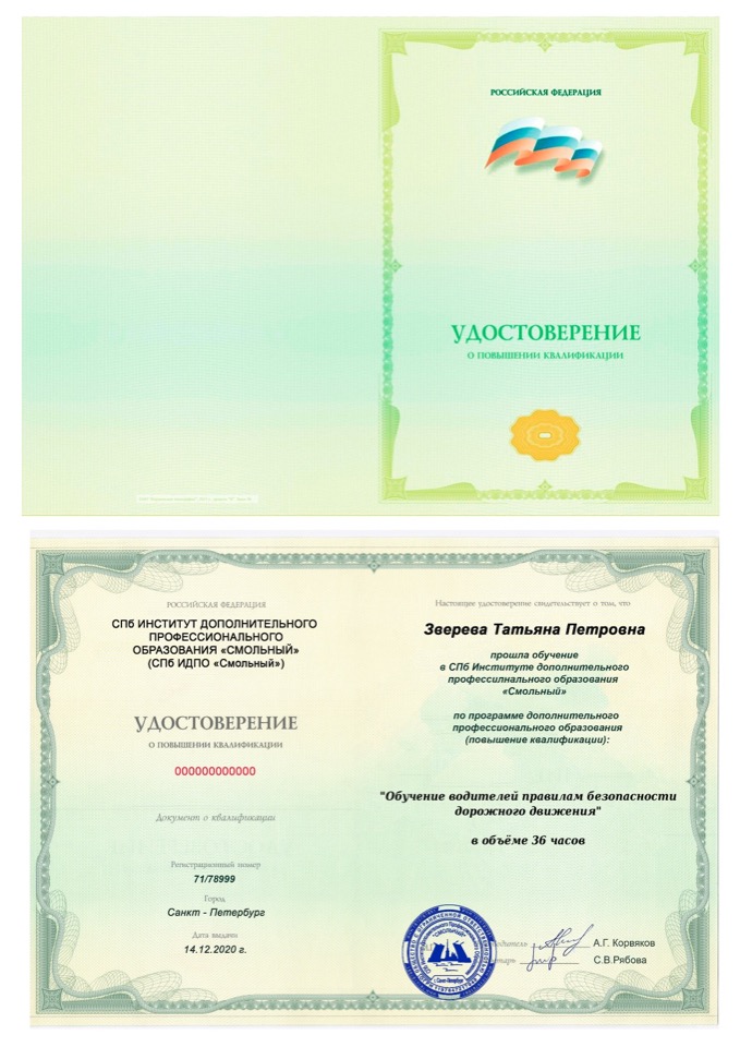Санкт-Петербургский Институт дополнительного профессионального образования «Смольный» (СПб ИДПО «Смольный») осуществляет обучение специалистов по программе "Обучение водителей правилам безопасности дорожного движения" в заочной форме (не указывается в документе) с применением дистанционных технологий. Для обучения достаточно наличие компьютера с выходом в информационную сеть Интернет.