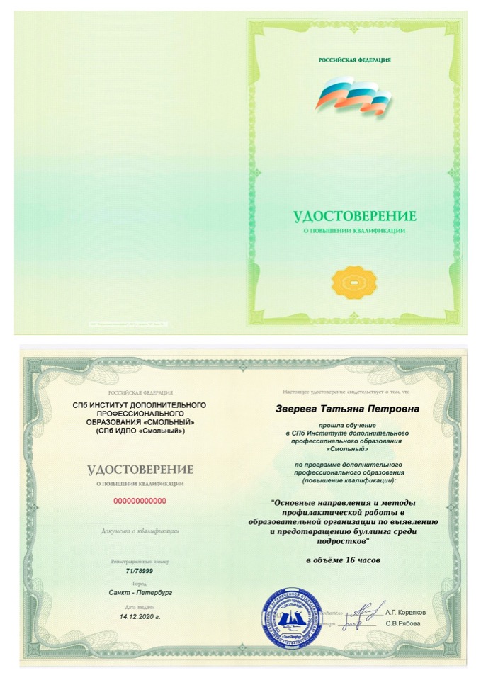 Санкт-Петербургский Институт дополнительного профессионального образования «Смольный» (СПб ИДПО «Смольный») осуществляет обучение специалистов по программе "Основные направления и методы профилактической работы в образовательной организации по выявлению и предотвращению буллинга среди подростков" в заочной форме (не указывается в документе) с применением дистанционных технологий. Для обучения достаточно наличие компьютера с выходом в информационную сеть Интернет.
